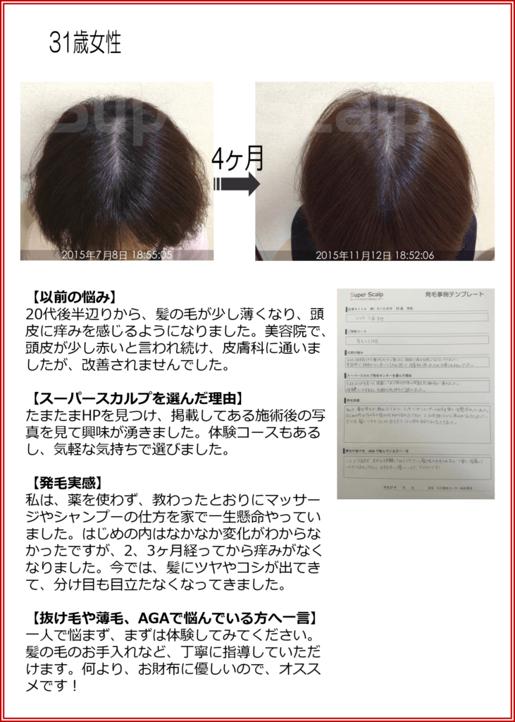 痒かった頭皮の悩みが解消されました!